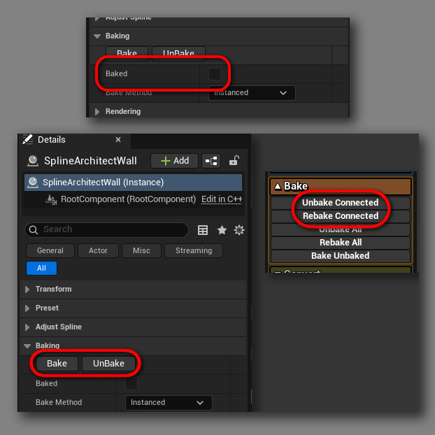 Baked components can still be modified, and changes will remain until the SplineArchitectWall is baked again. |