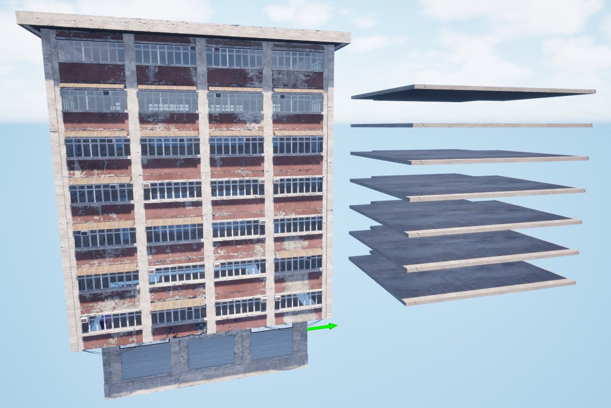 During baking, StaticMesh assets are also created for corners and floors. The meshes are saved with clean names and, where possible, reused in other structures. |