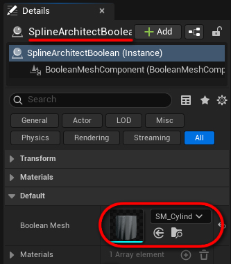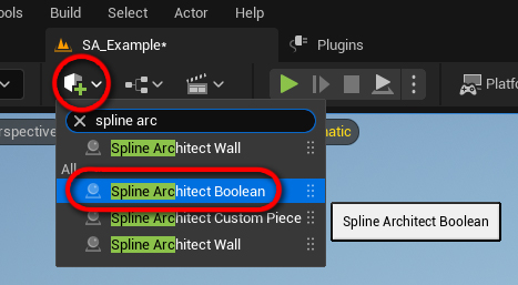 - The second way is simply to press the "Add Boolean" button in the Spline Architect utility widget. This button does exactly the same as described above. The new
