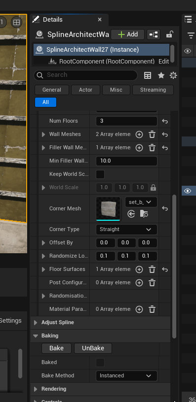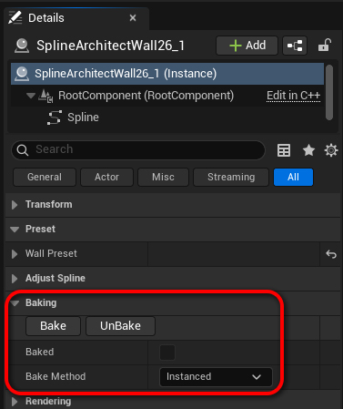 Baking is one of the core features of the Spline Architect plugin. Before packaging the game, all SplineArchitectWall