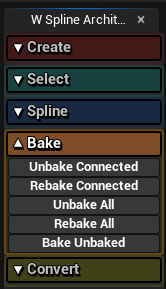 individually. The Utility Widget has buttons in the "Bake" section that allow you to bake or unbake all, selected, or connected SplineArchitectWall