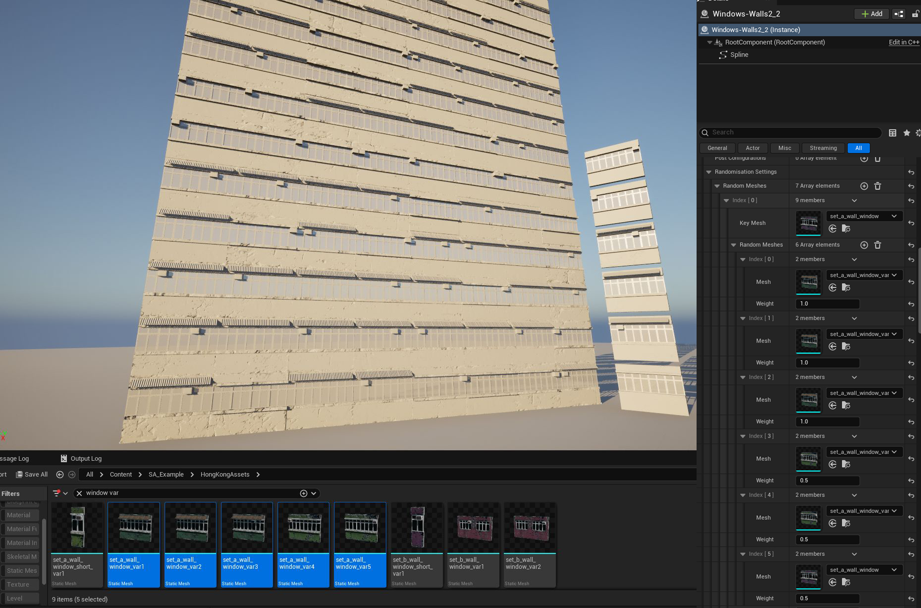 RandomMeshes – An array of meshes with weights (FRandomMeshWithWeight ). A higher weight increases the chance of being selected. |
